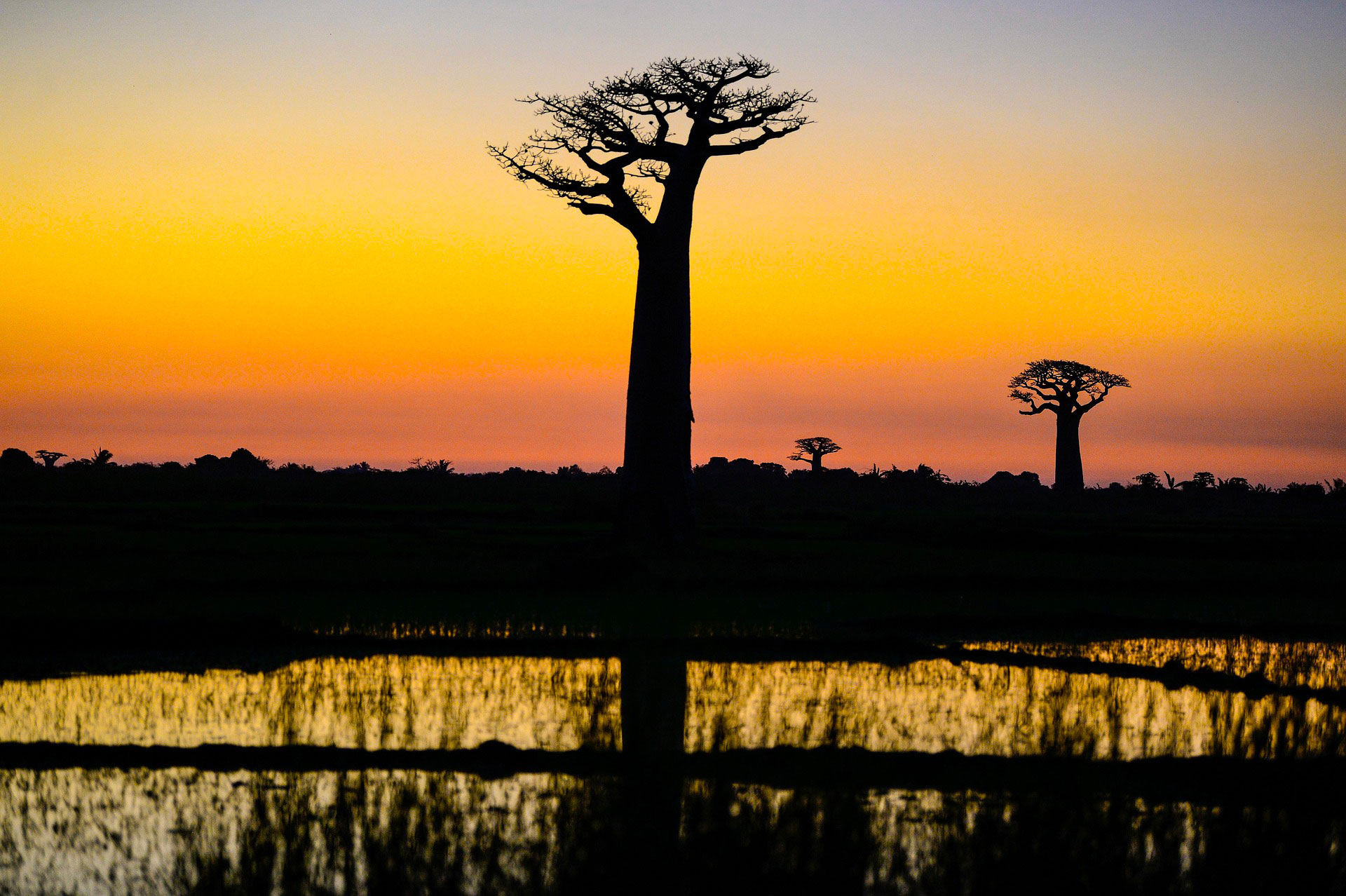 Située entre Morondava et Belon'i Tsiribihina, l'Allée des Baobabs est l'un des sites les plus emblématiques de Madagascar. Ces géants vieux de plus de 800 ans, surnommés 'Renala' (Mère de la forêt), bordent une piste de terre ocre, créant un paysage surréaliste unique au monde. Autrefois entourés d'une forêt tropicale dense, ces spécimens de Adansonia grandidieri sont aujourd'hui les derniers témoins d'un écosystème disparu. Leur silhouette massive et leurs branches ressemblant à des racines tendues vers le ciel en font une merveille botanique et un symbole de la résilience naturelle de l'île Rouge. Allée des Baobabs
